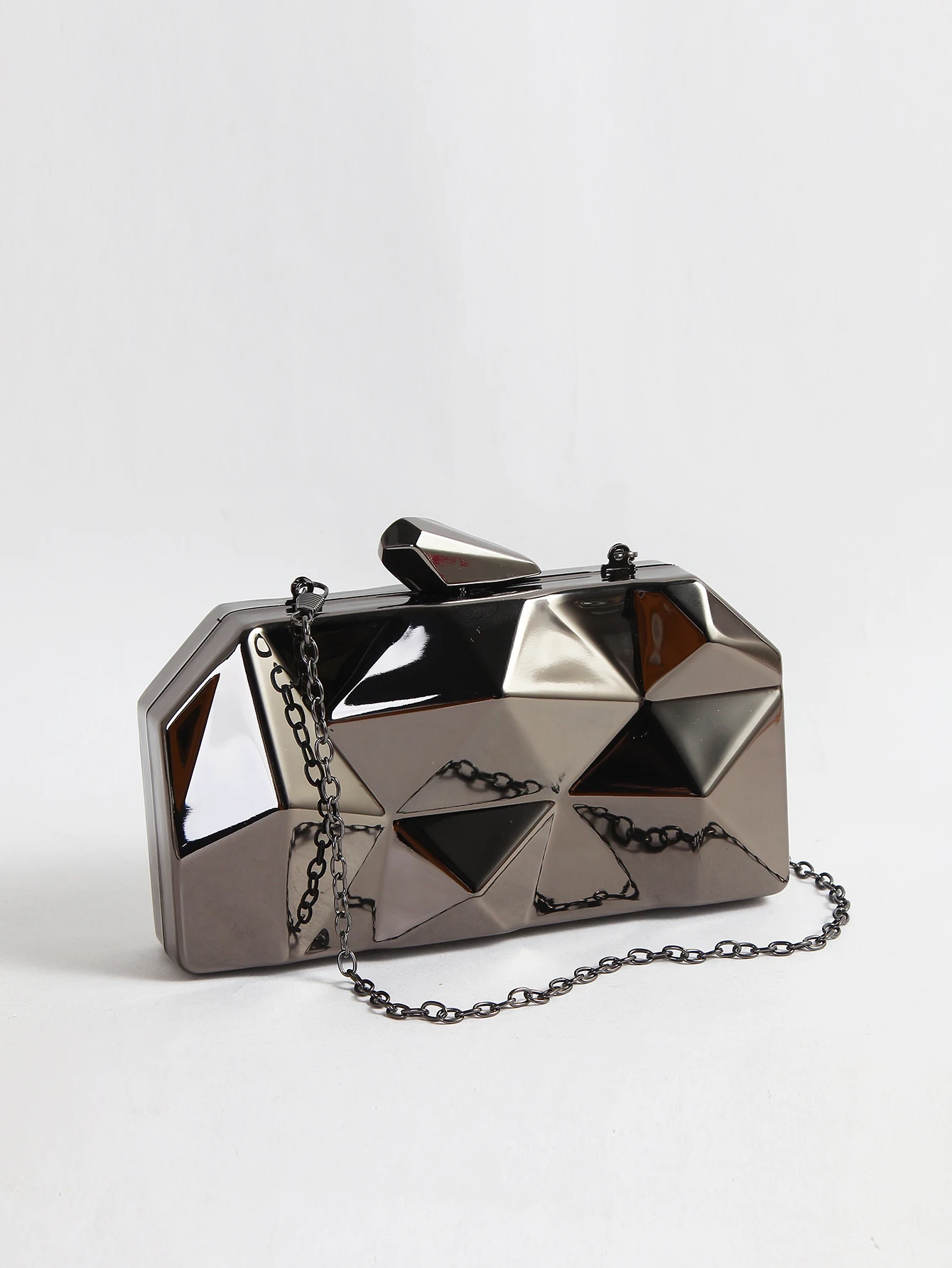 Make a dazzling statement with this metallic minaudiere clutch, designed to bring glamour and sophistication to any occasion. Its sleek geometric shape and radiant finish make it the perfect accessory for weddings, parties, and elegant evenings out.